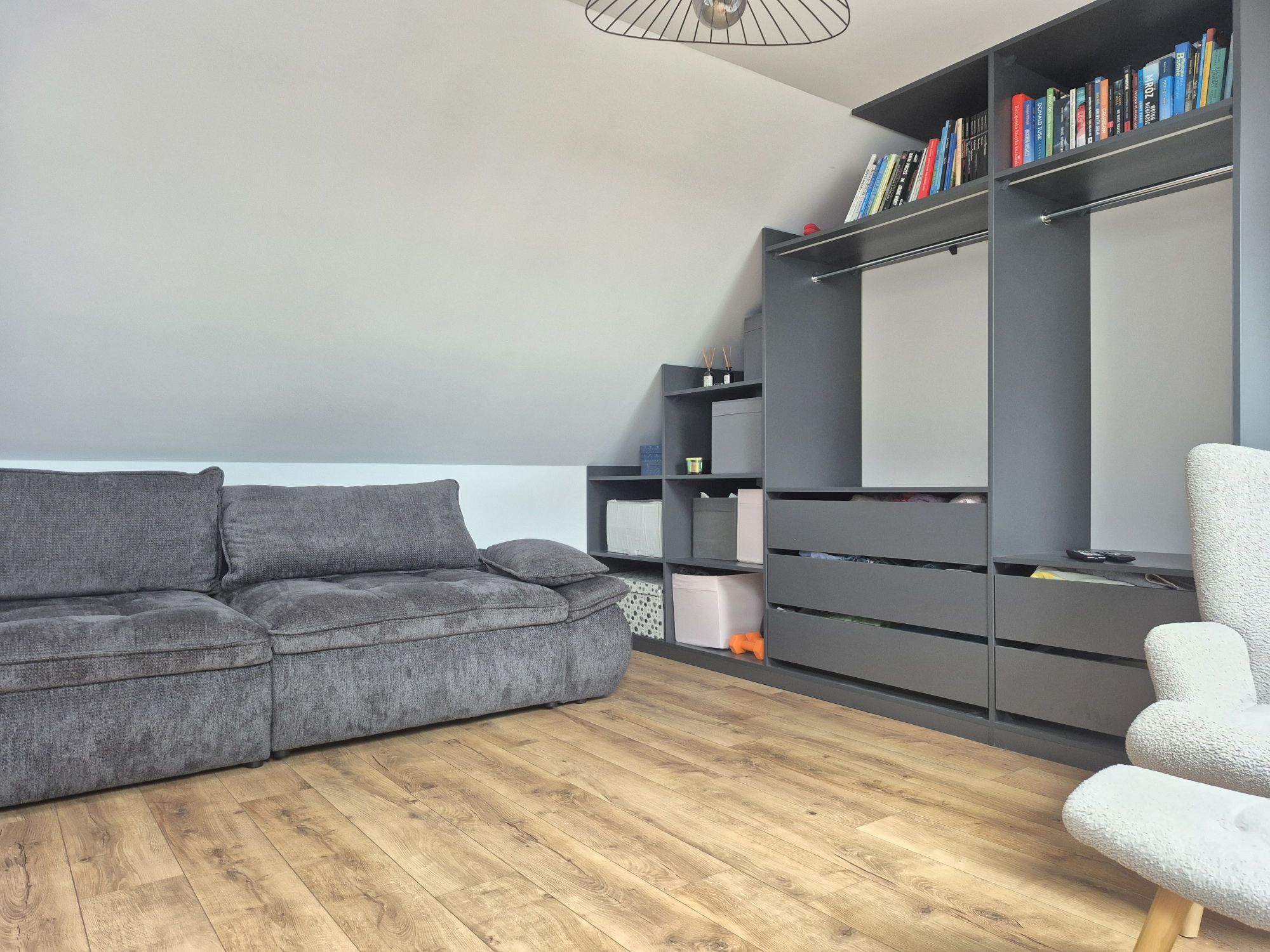 Trzecia kondygnacja – to ok 25 mkw. poddasza, które jest już wykończone i służy jako dodatkowy pokój - jest to dodatkowa powierzchnia nie wliczaną w powierzchnię użytkową