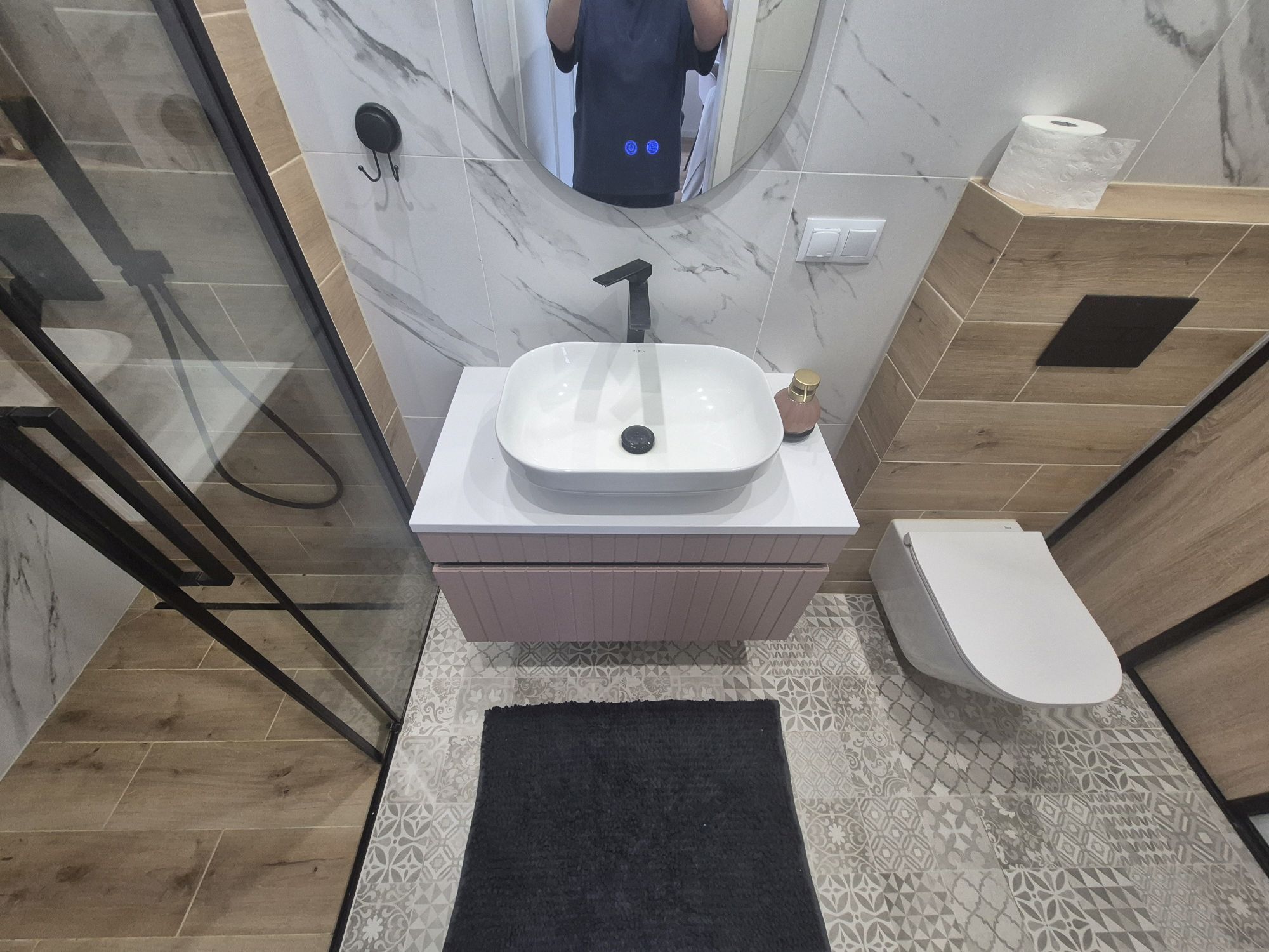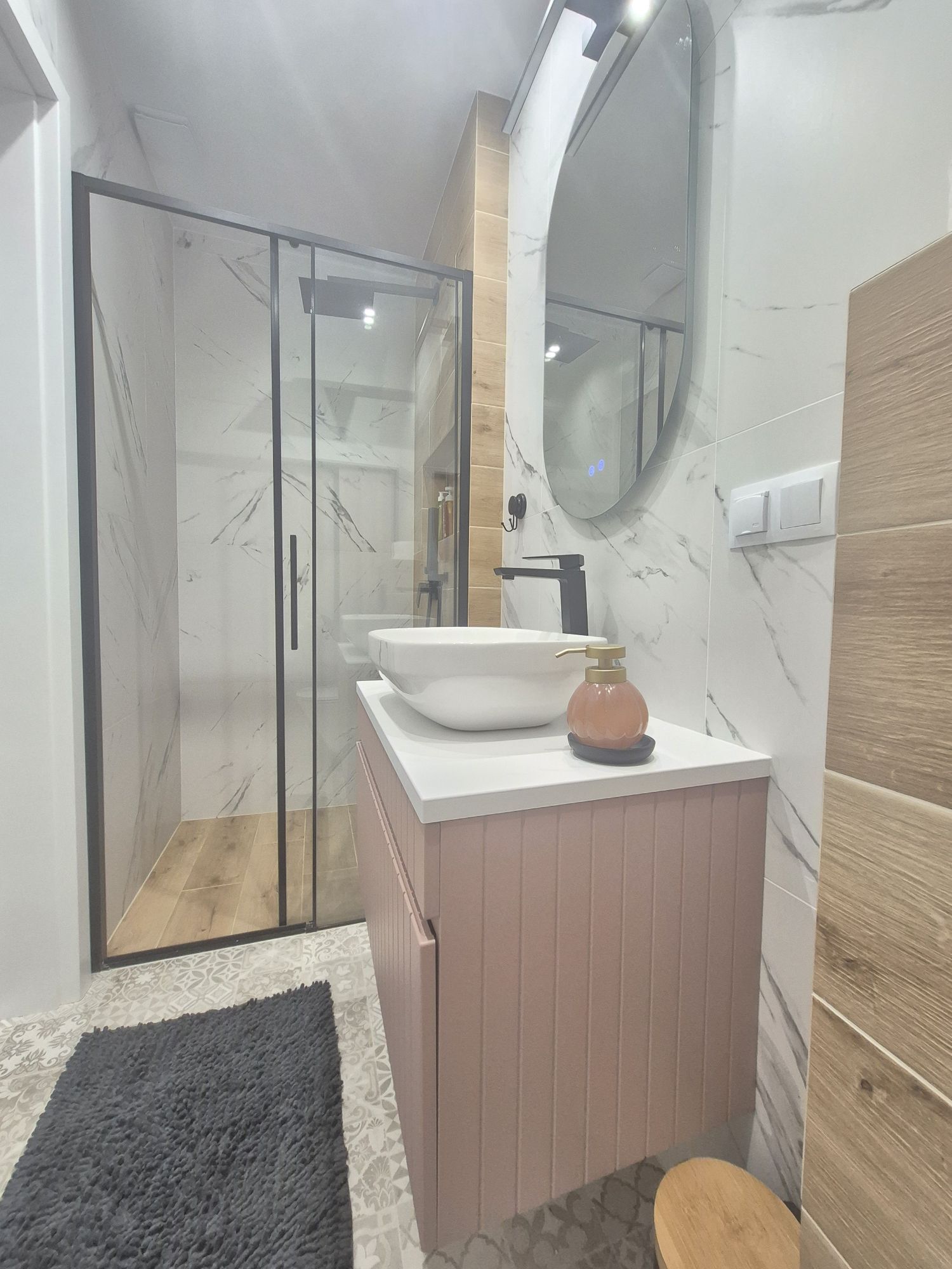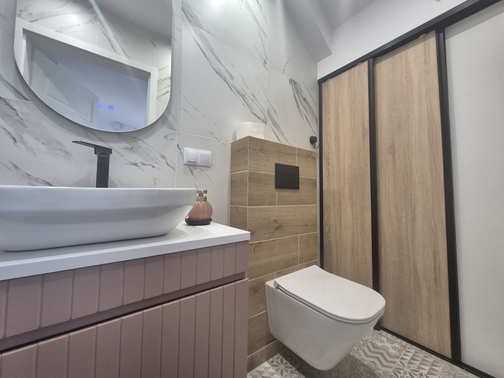 - łazienka z kabina prysznicową i z wc – 4,12 mkw.