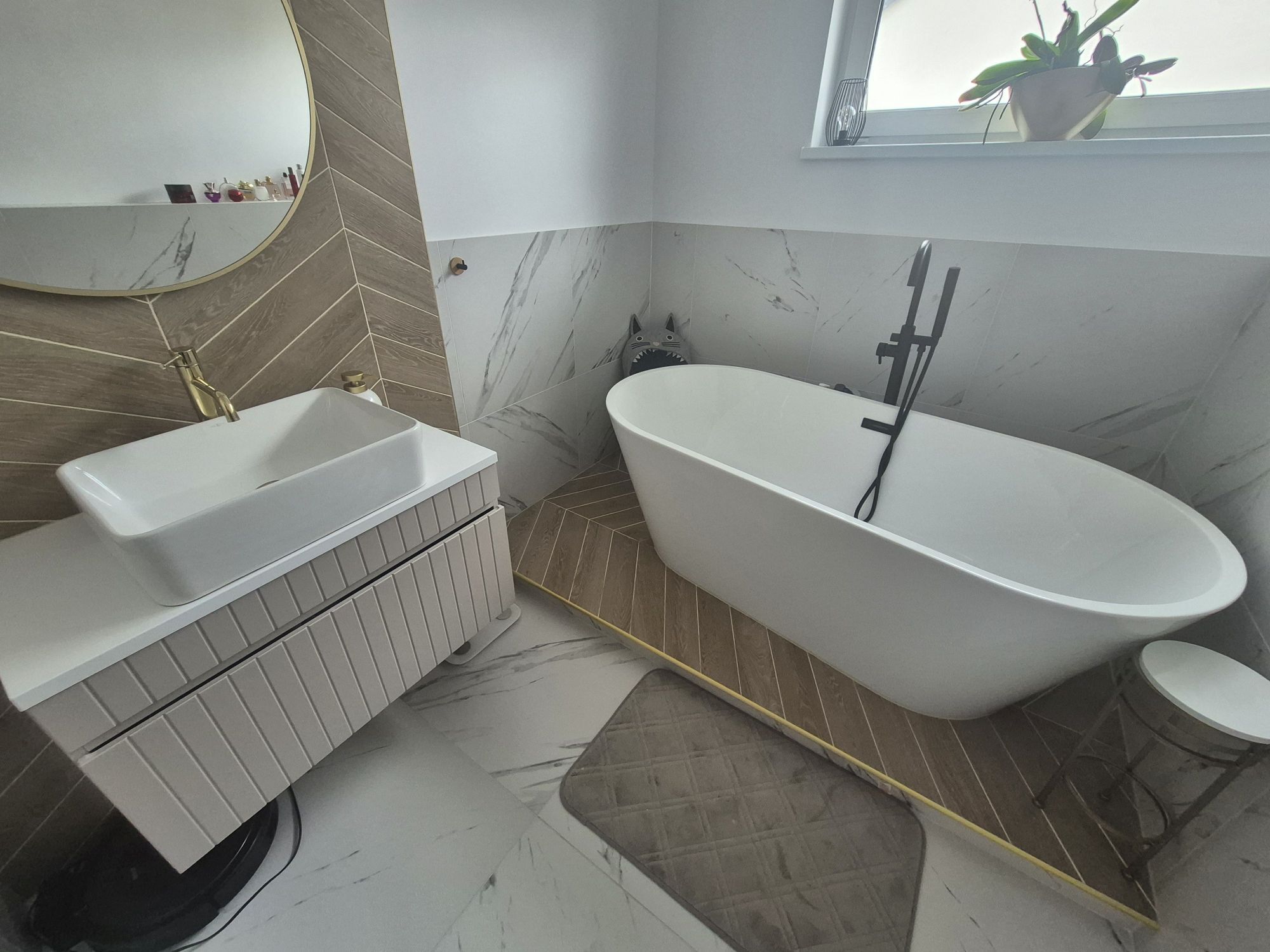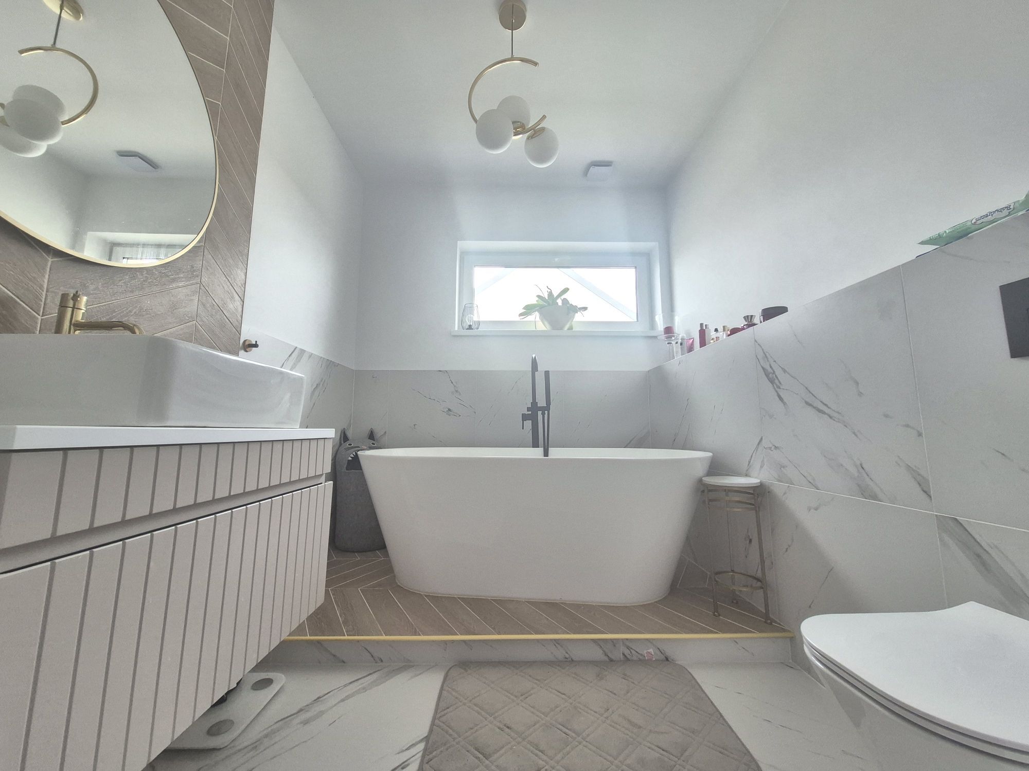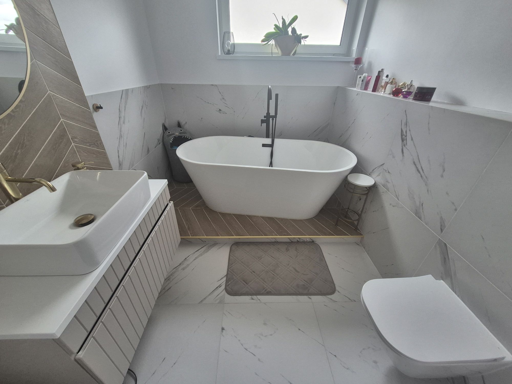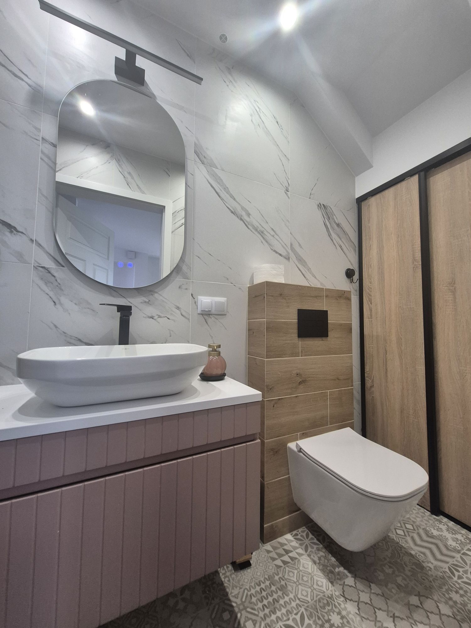- łazienka z kabina prysznicową i z wc – 4,12 mkw.