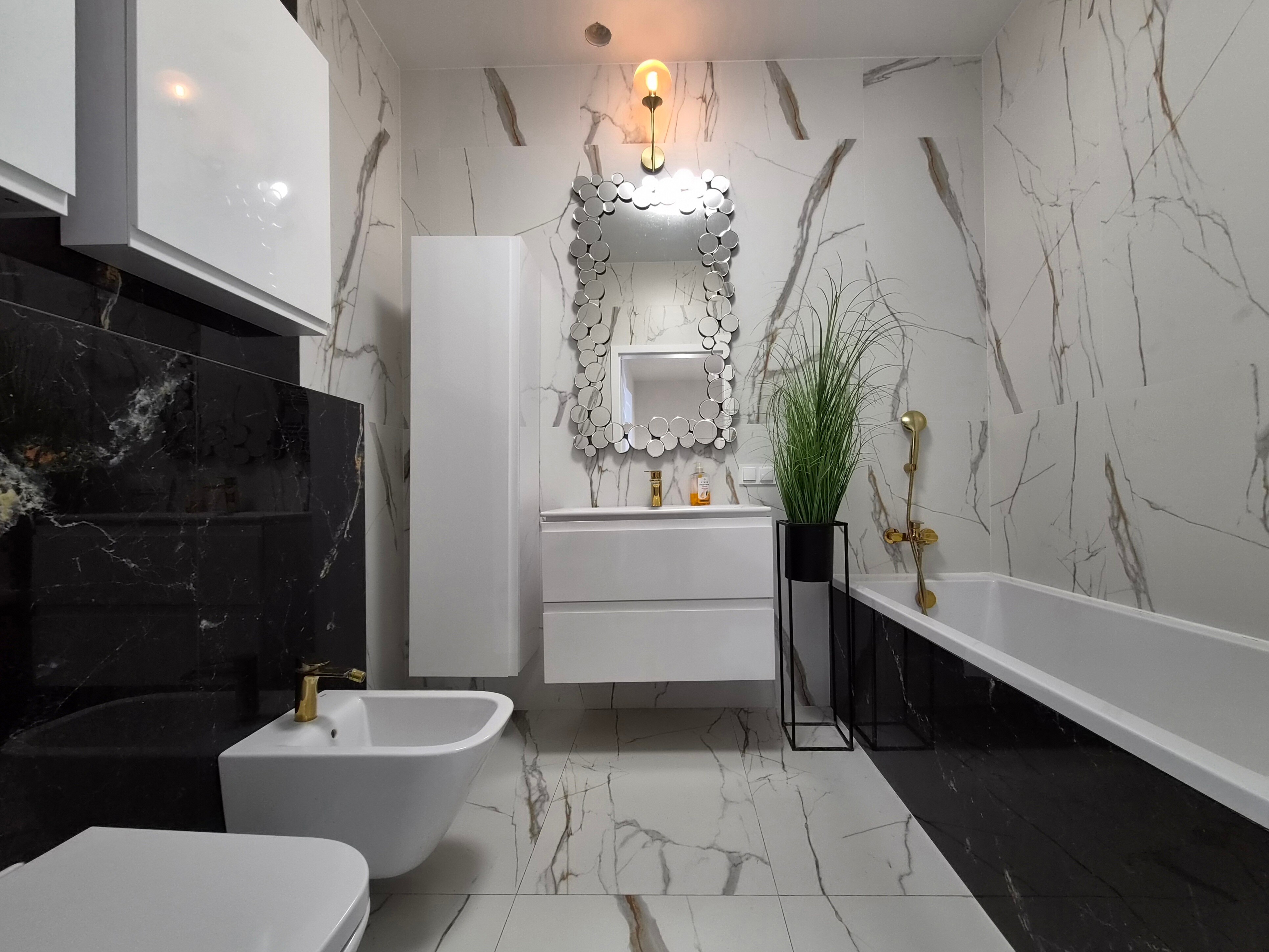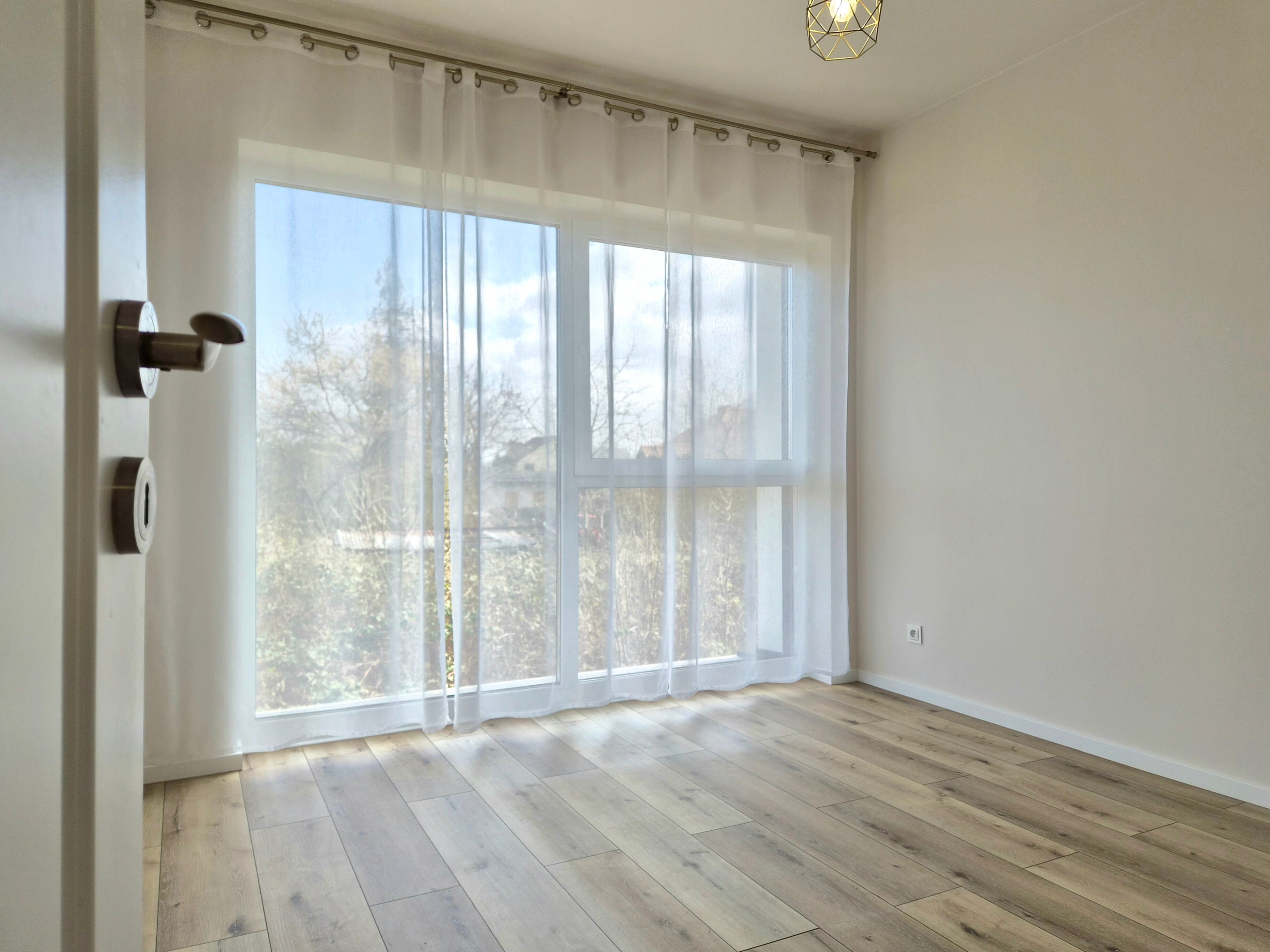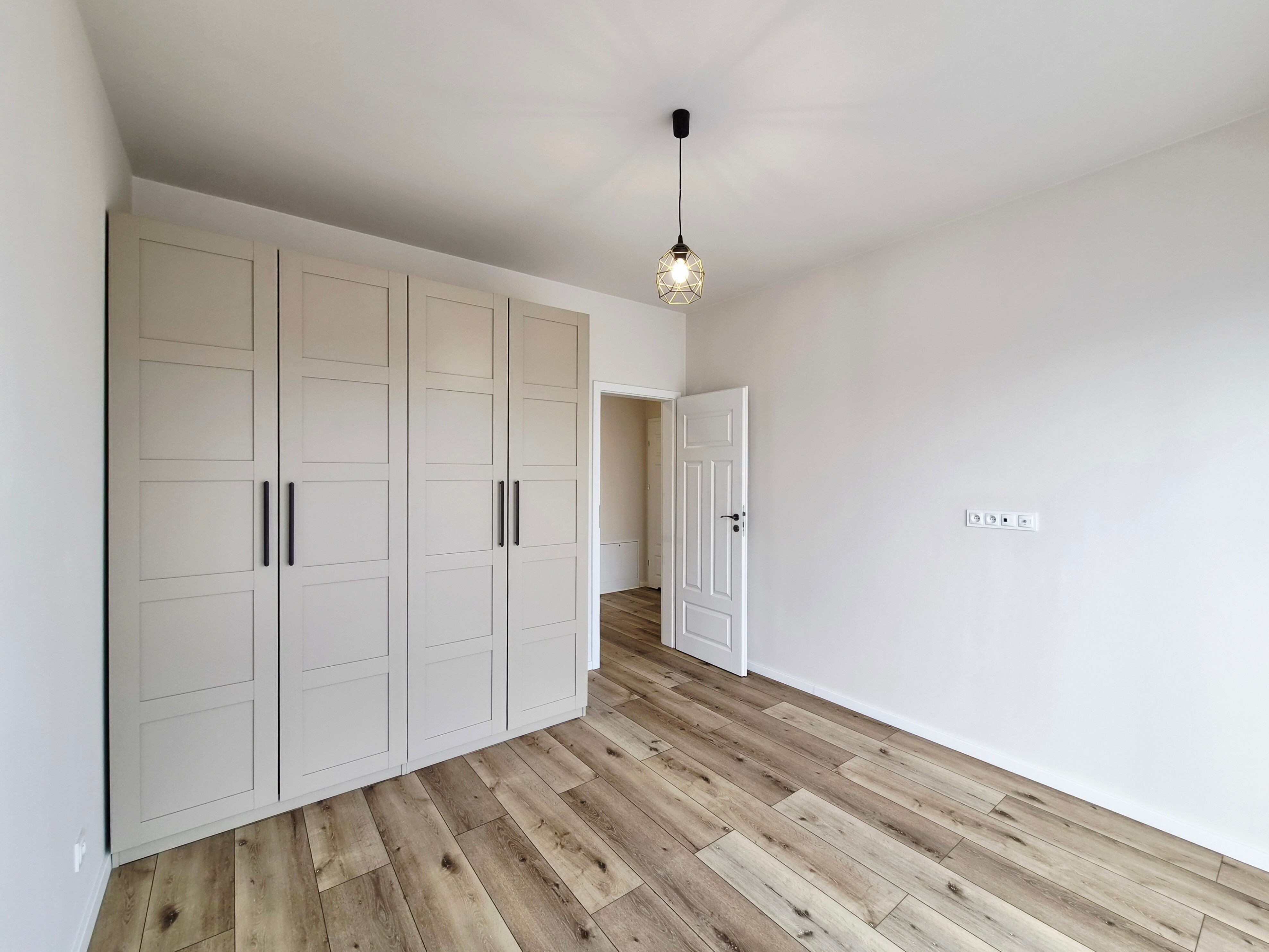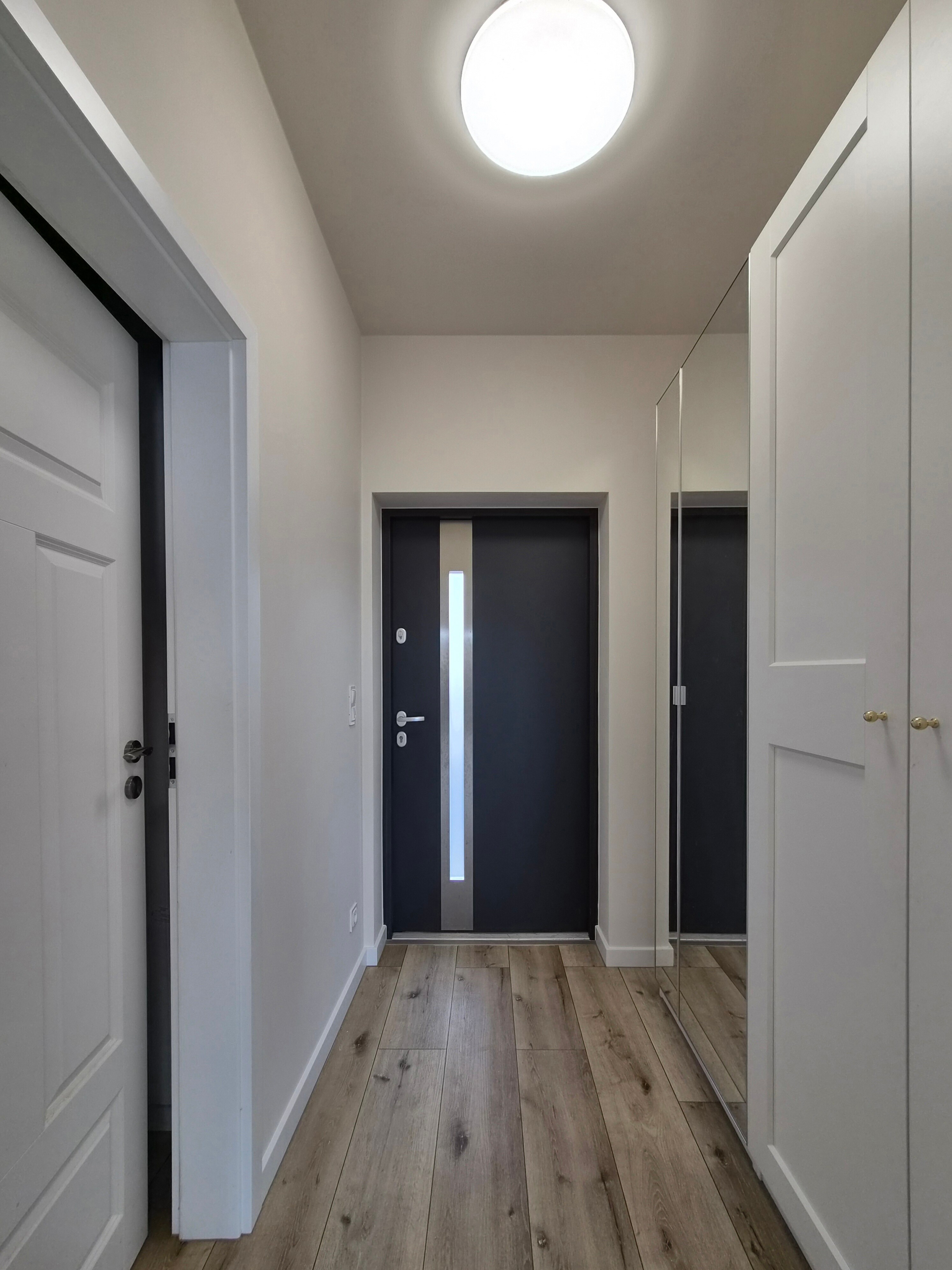 Praktyczność przestrzeni podkreśla garderoba oraz dwie eleganckie łazienki, w których masz do wyboru zarówno wannę, jak i prysznic. Jasne panele podłogowe i stylowe wykończenia nadają wnętrzu nowoczesny charakter.