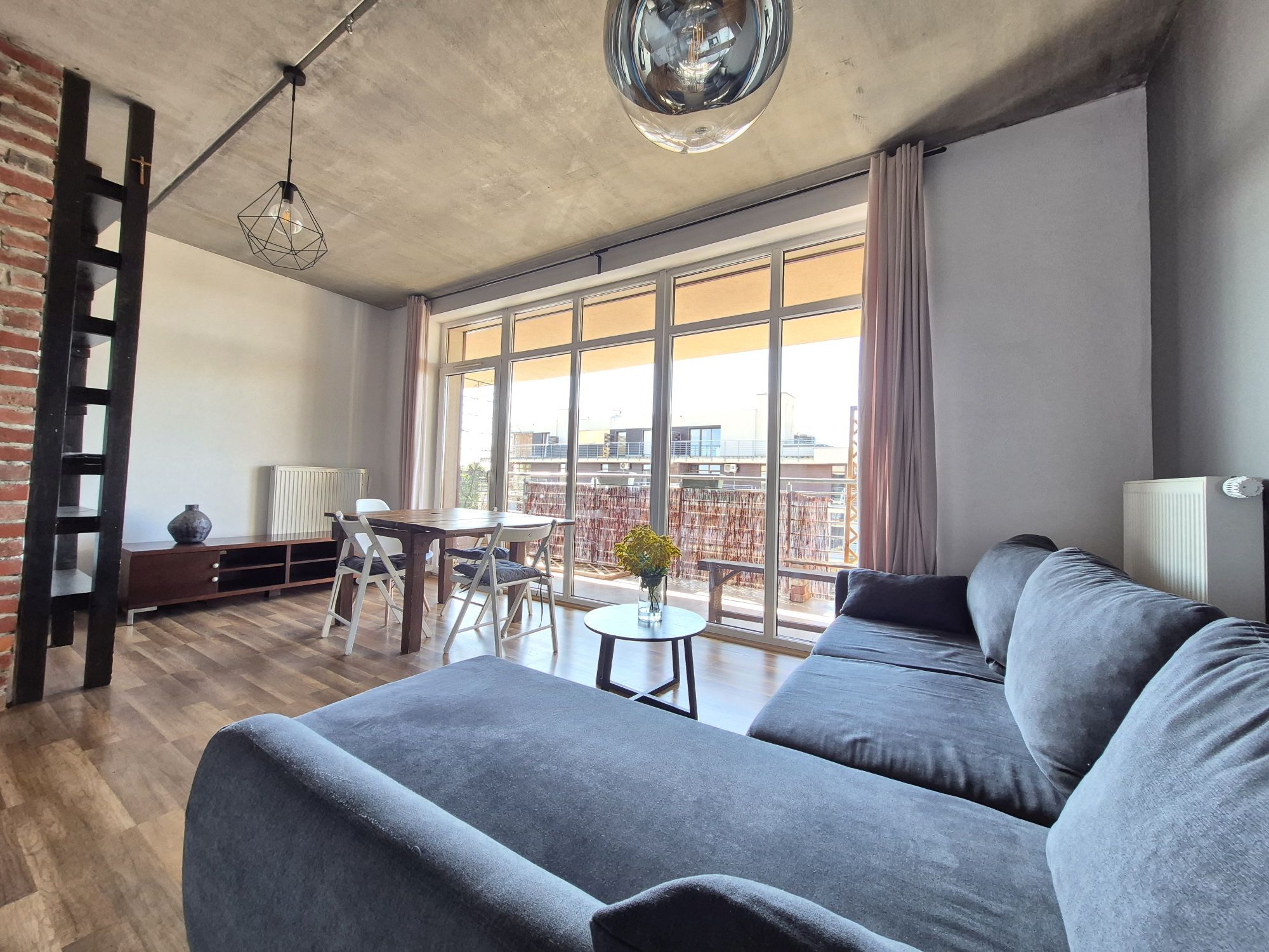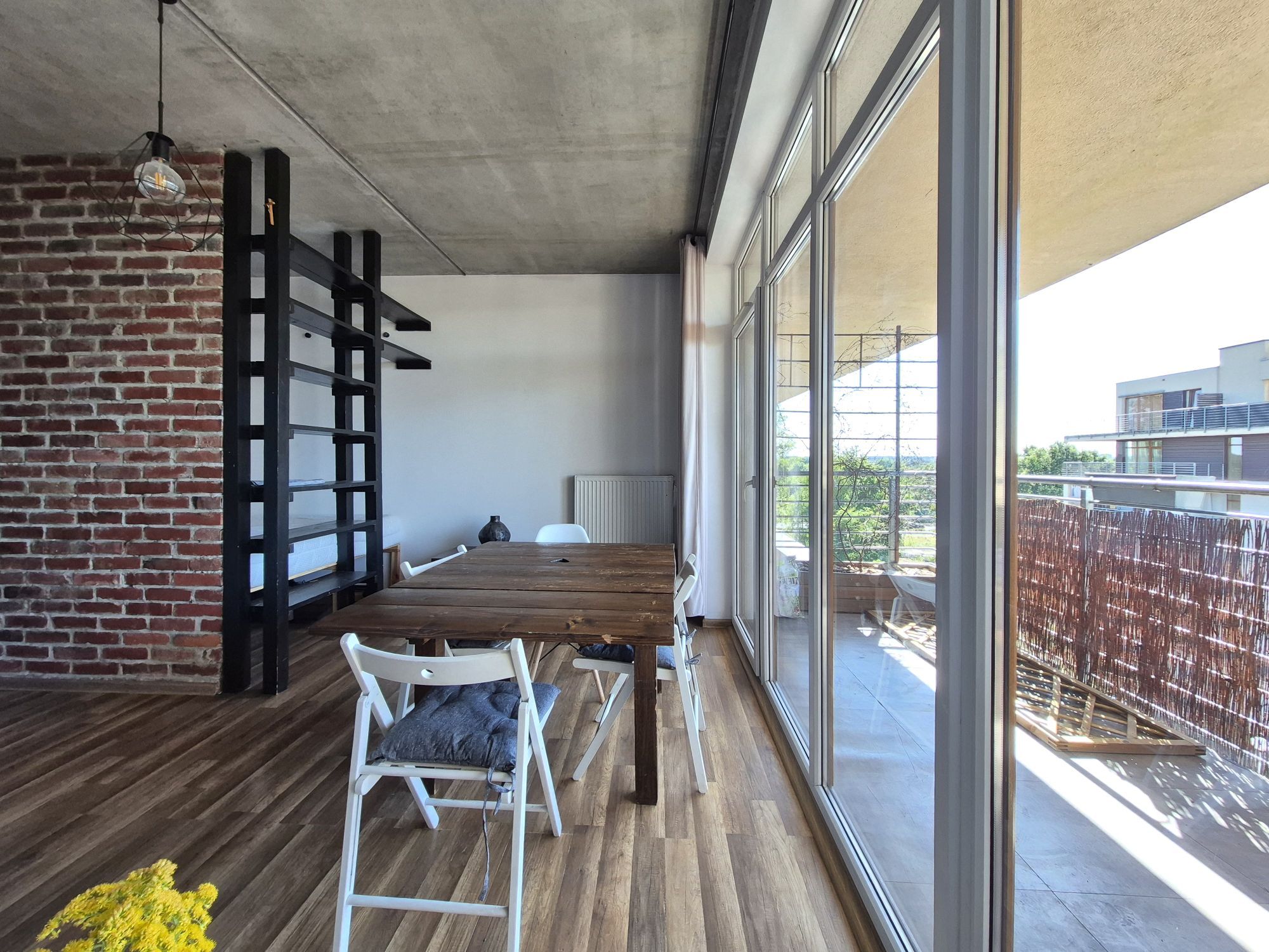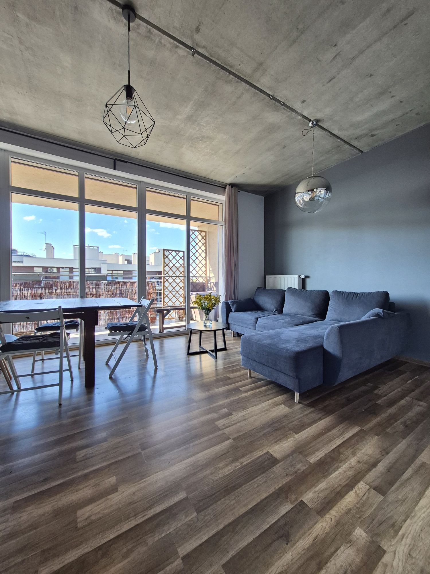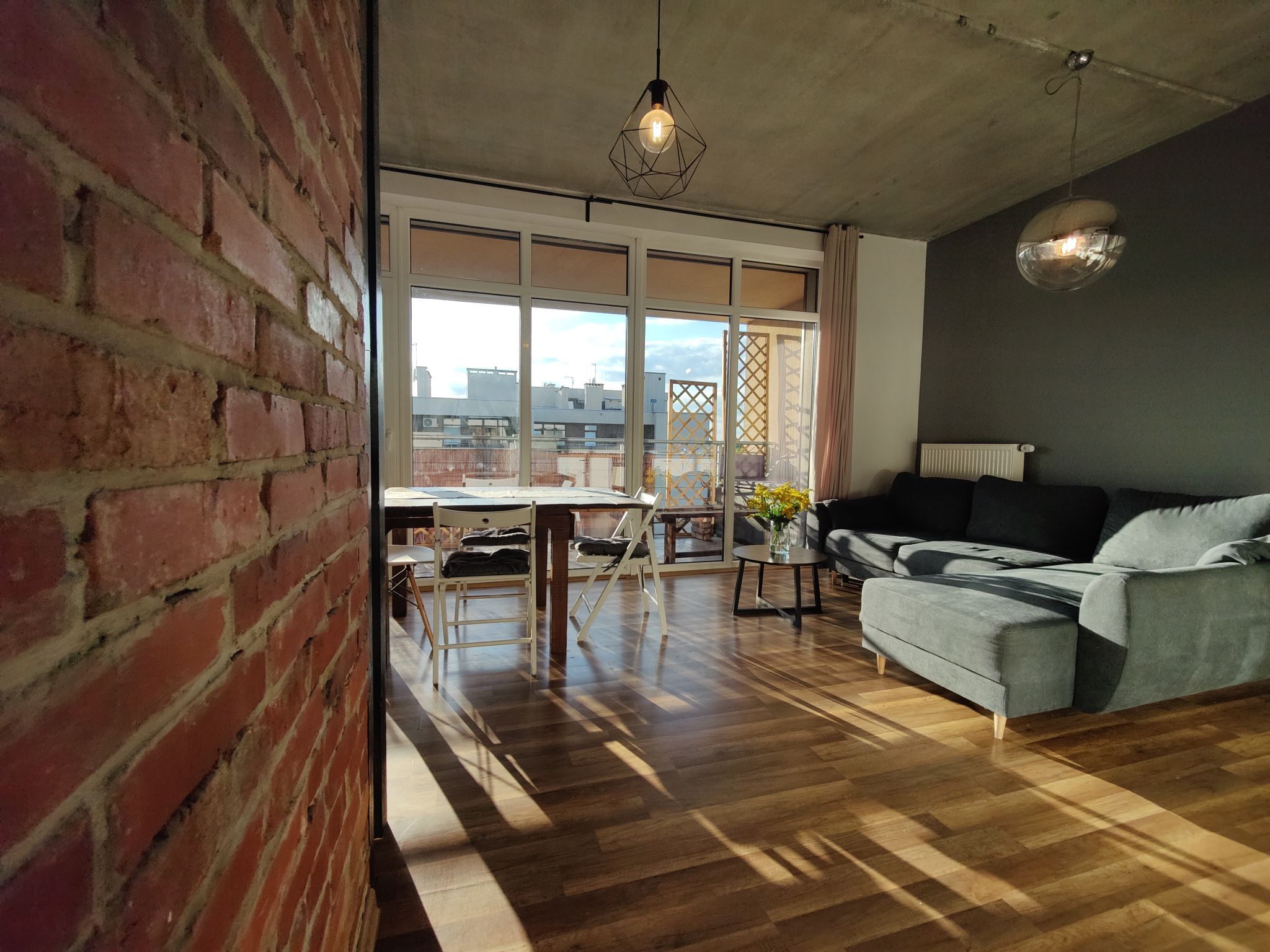 Mieszkanie składa się z dużego pokoju z aneksem kuchennym (ok. 26 mkw.) z wyjściem na duży balkon (8 mkw.) z wnęką do własnego zagospodarowania, przedpokoju, łazienki z wanną i wc (4,7 mkw.) oraz sypialni (ok. 12 mkw.).