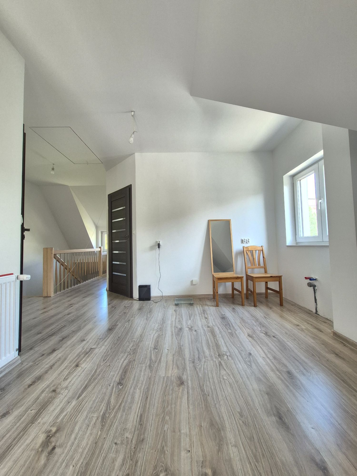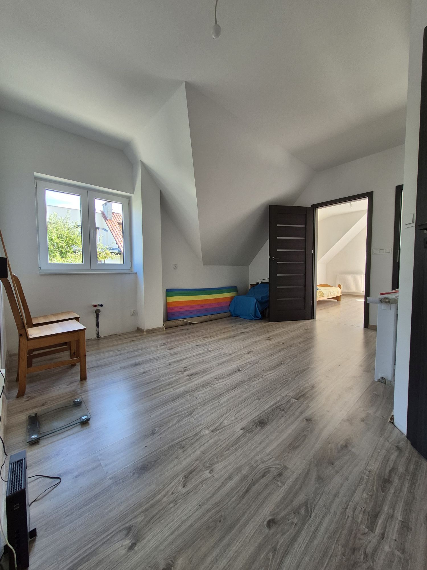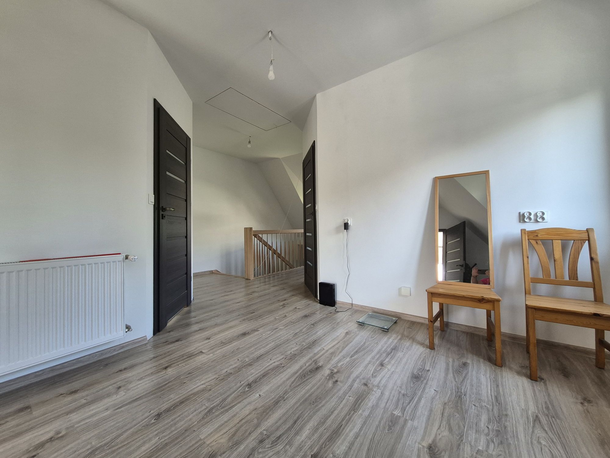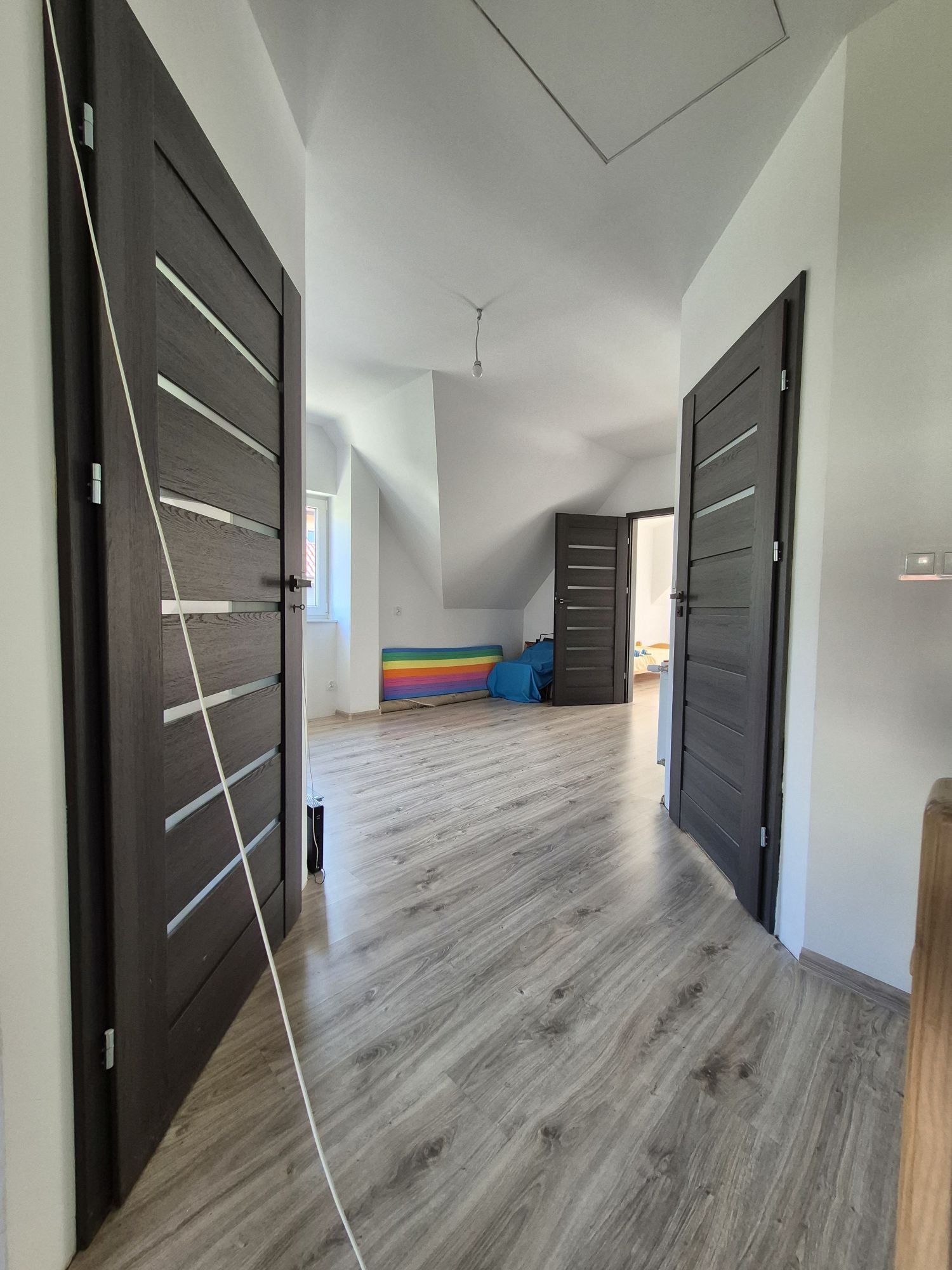 - opuszczane schody na poddasze użytkowe ok. 12 mkw. skosy do podłogi można wykorzystać na dodatkowy pokoik.