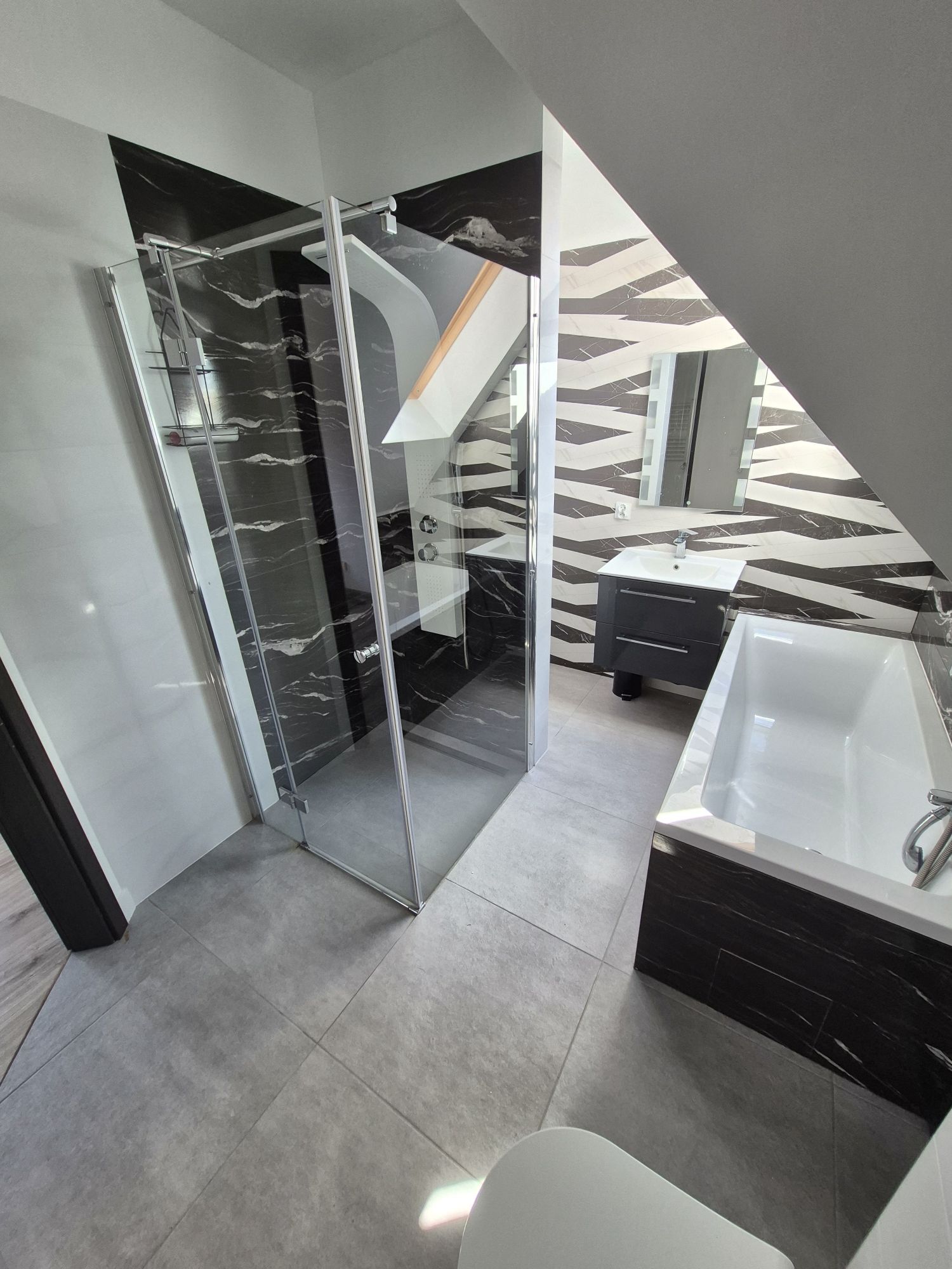 - łazienka z wanną i kabina prysznicową oraz wc ok. 5 mkw.