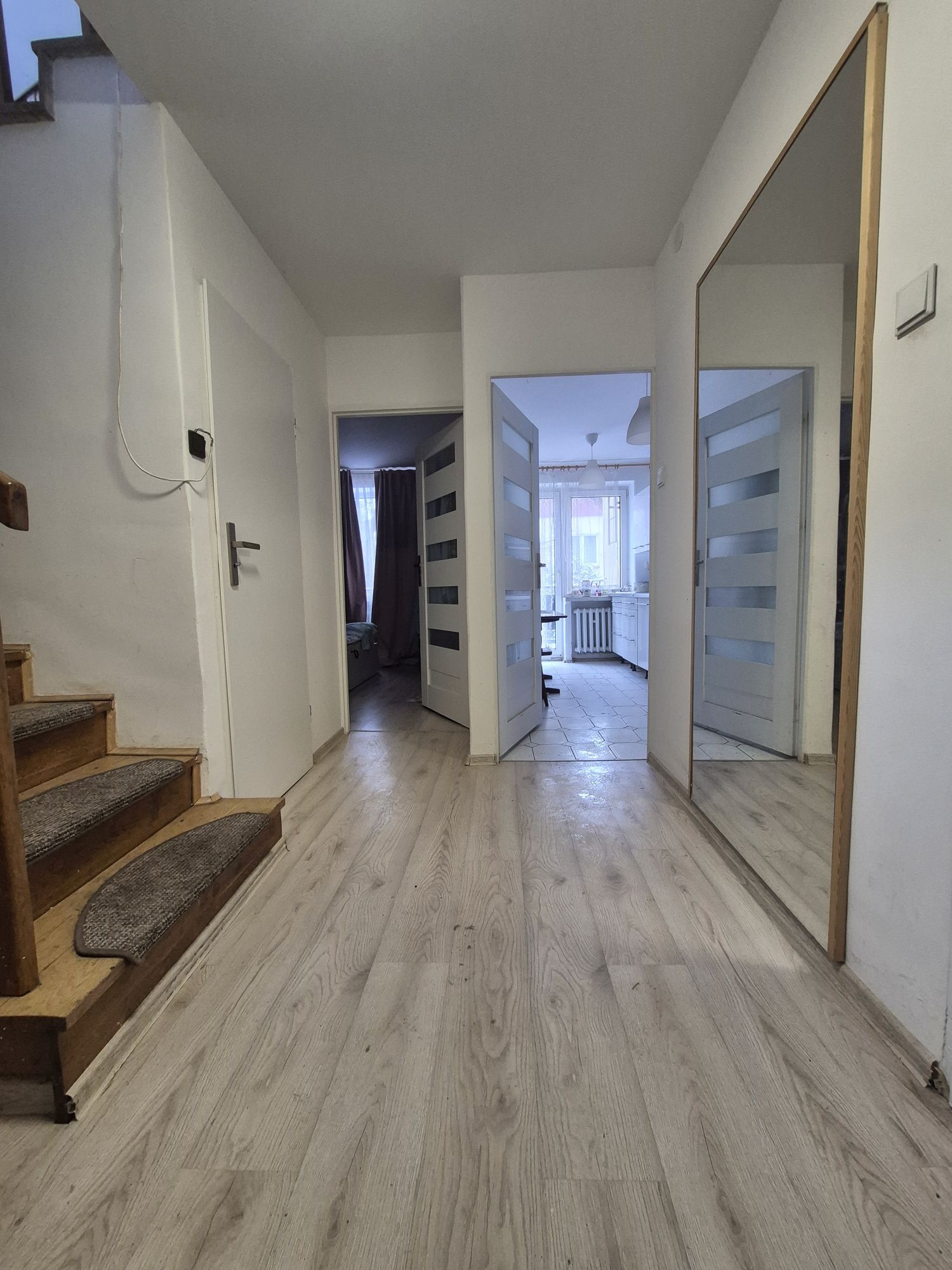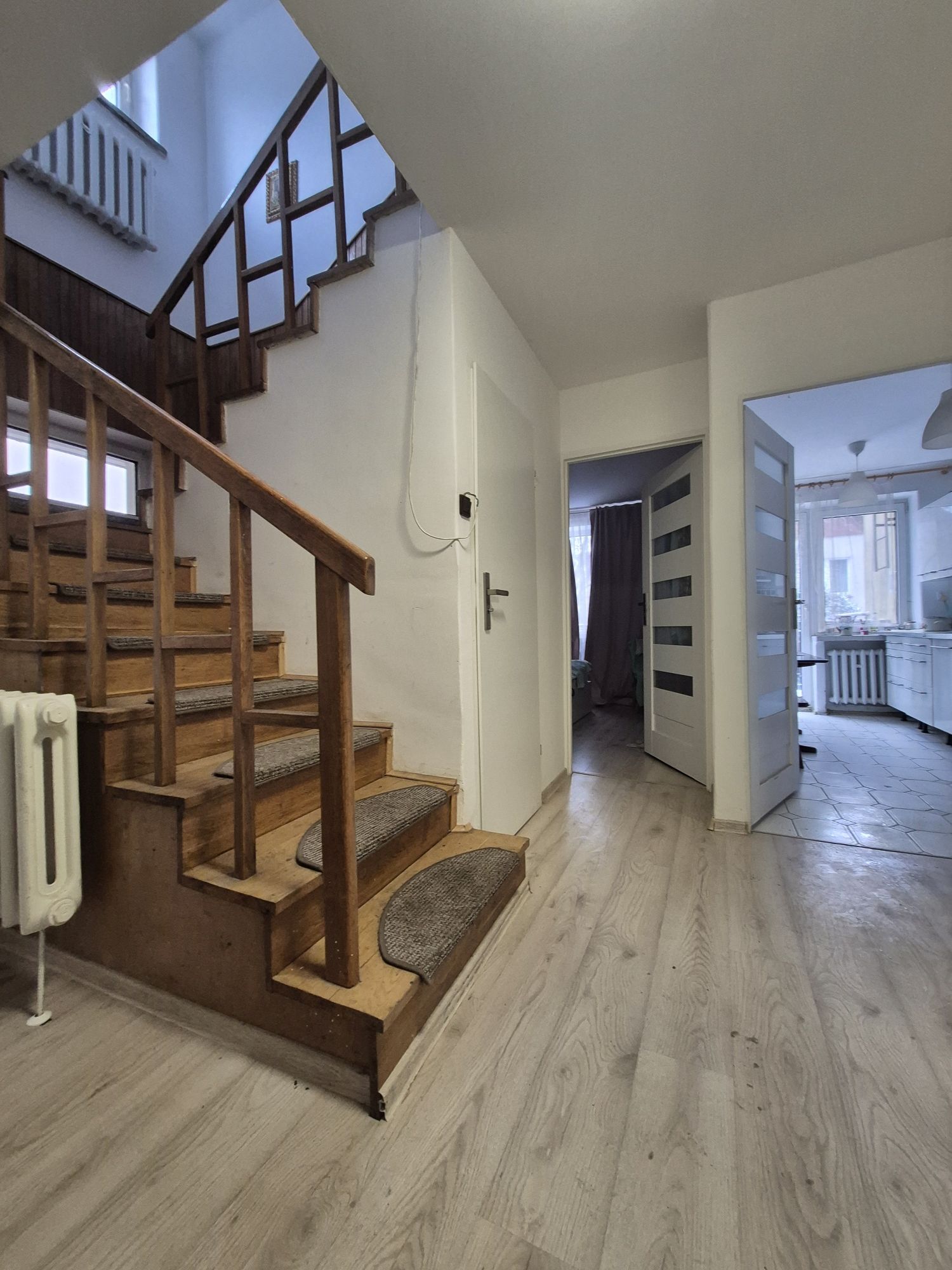 PRZYZIEMIE – aktualnie zostało przerobione na 4 pokoje, łazienkę i kuchnię, które są wynajmowane. Posiada osobne wejście.