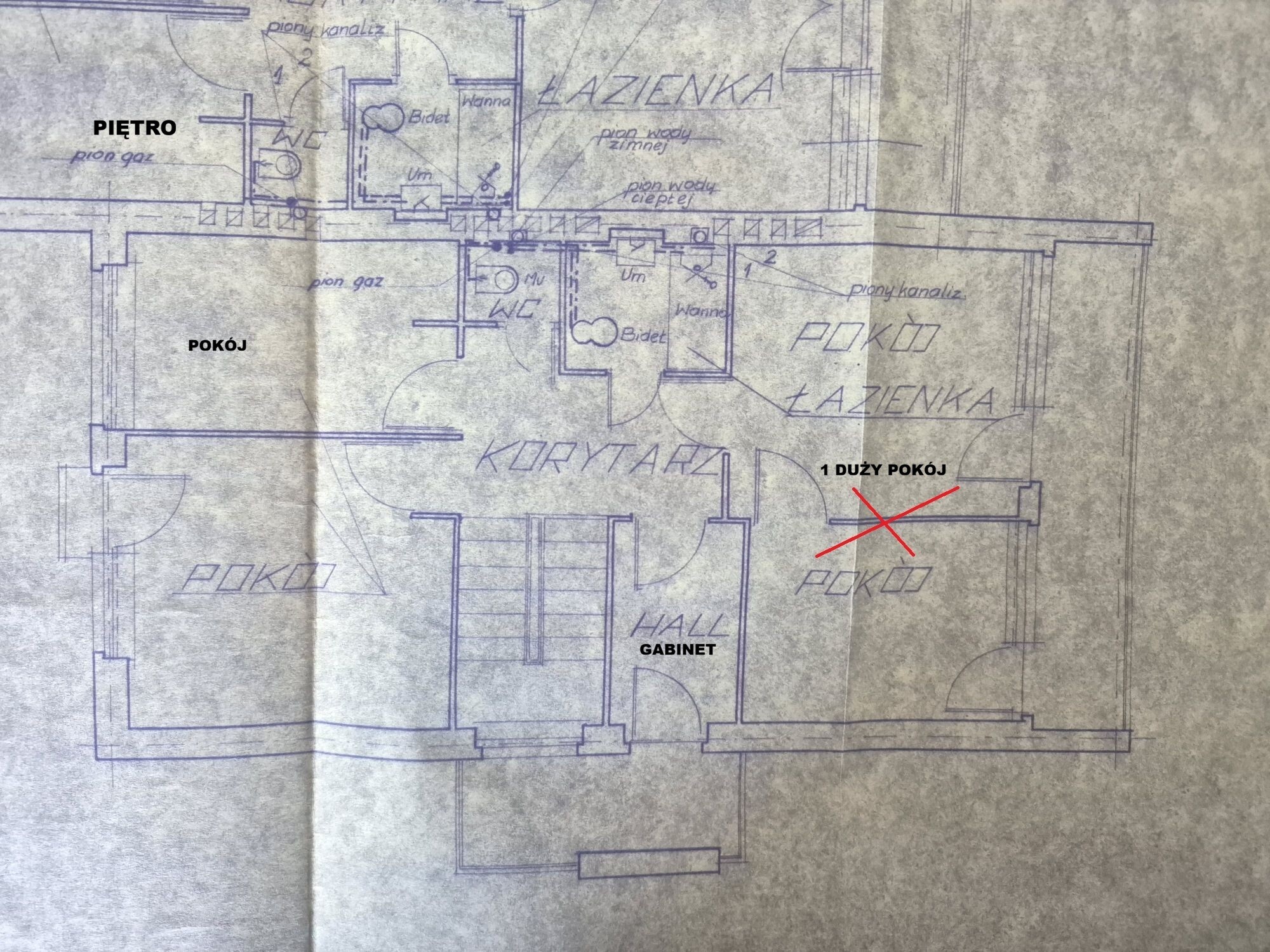 - 3 sypialnie – 2 z wyjściem na balkon (pierwotnie były cztery pokoje, co widać na rzucie)