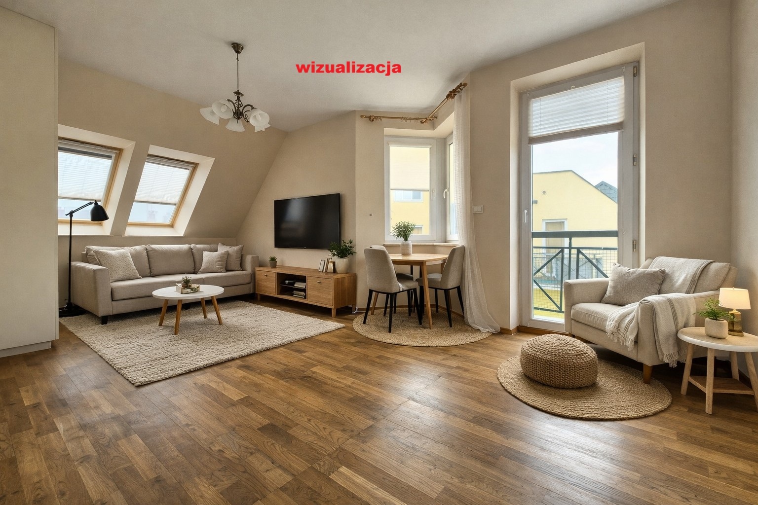 - dużego pokoju z wyjściem na balkon (16.7 mkw.),